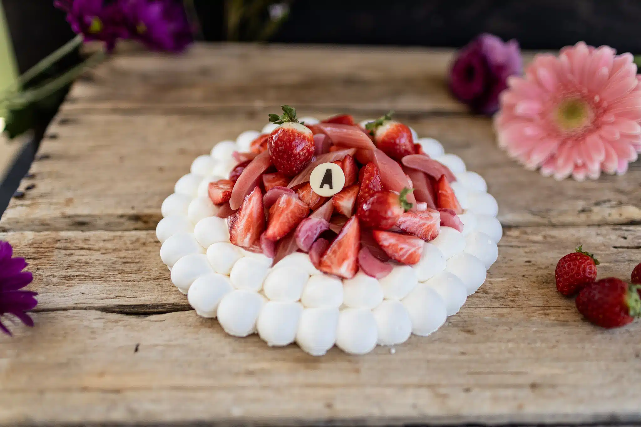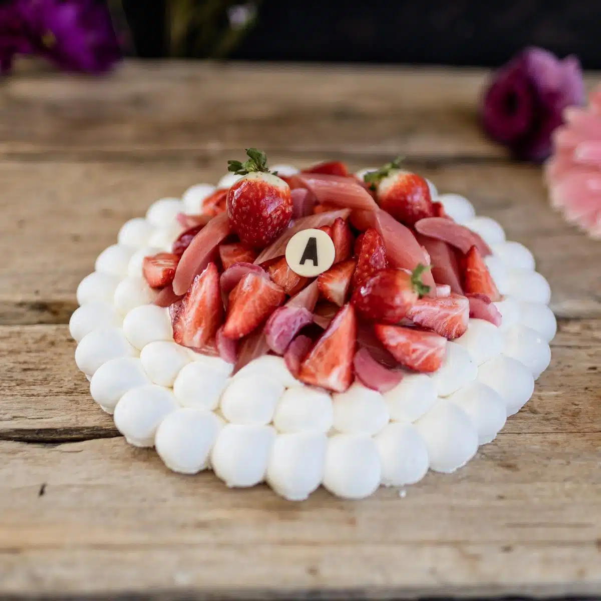 Notre pavlova artisanale est le dessert parfait pour souligner la fête des Mères. Cette création légère et élégante marie une meringue croustillante à une crème chantilly au mascarpone et à l’épinette. Le tout est garni de fraises du Québec et de rhubarbe de l’Ontario, sous trois formes : fraîche, pochée et en compote.